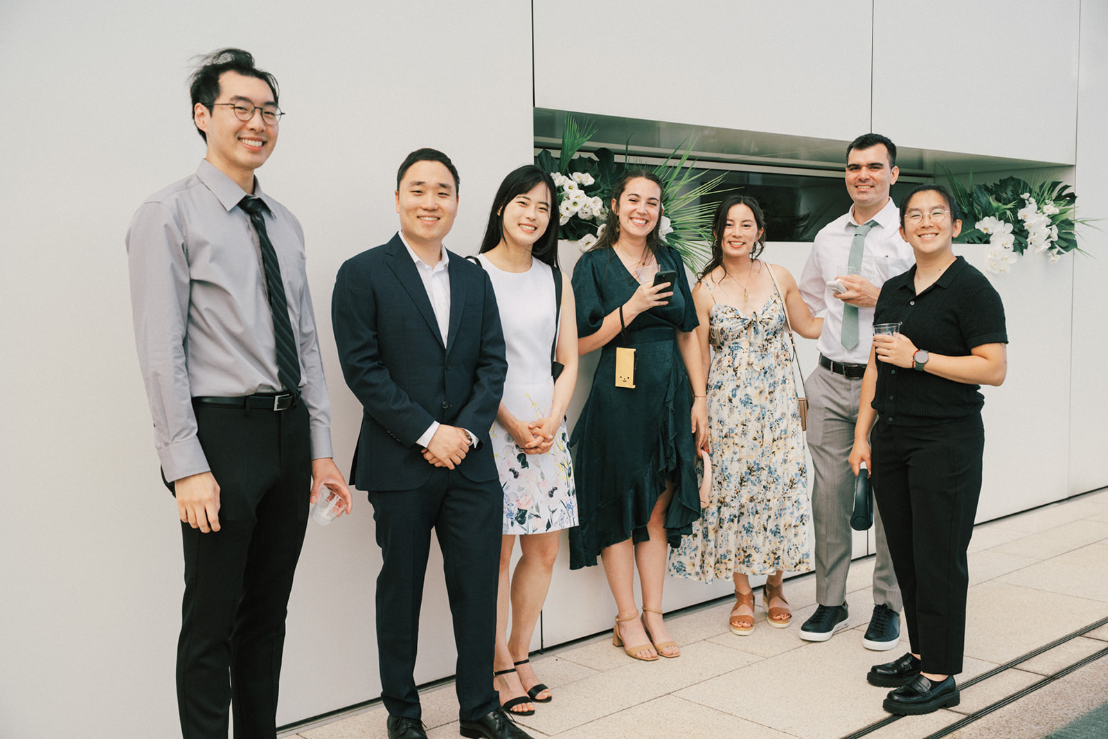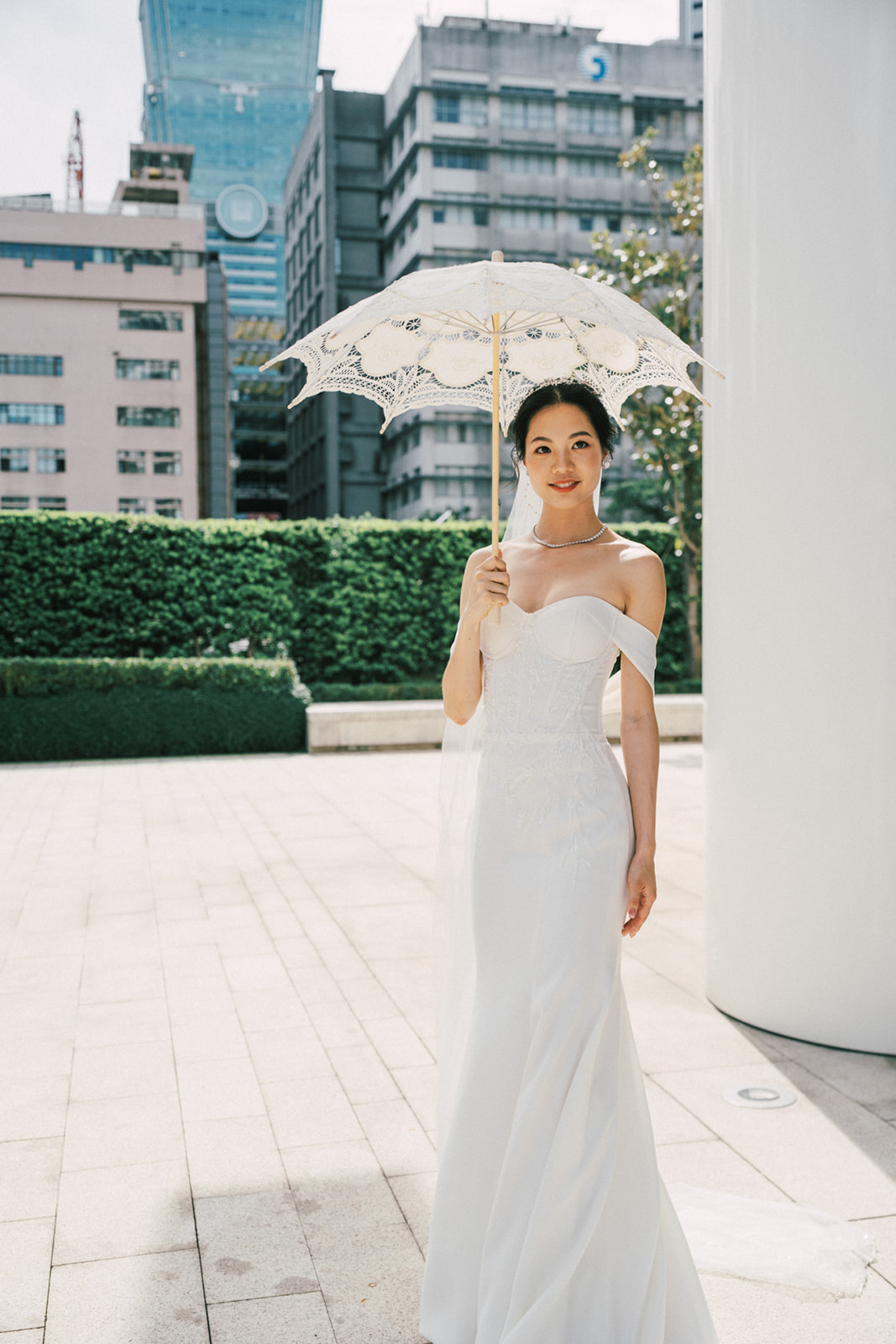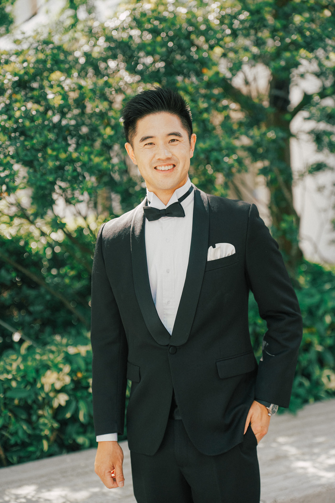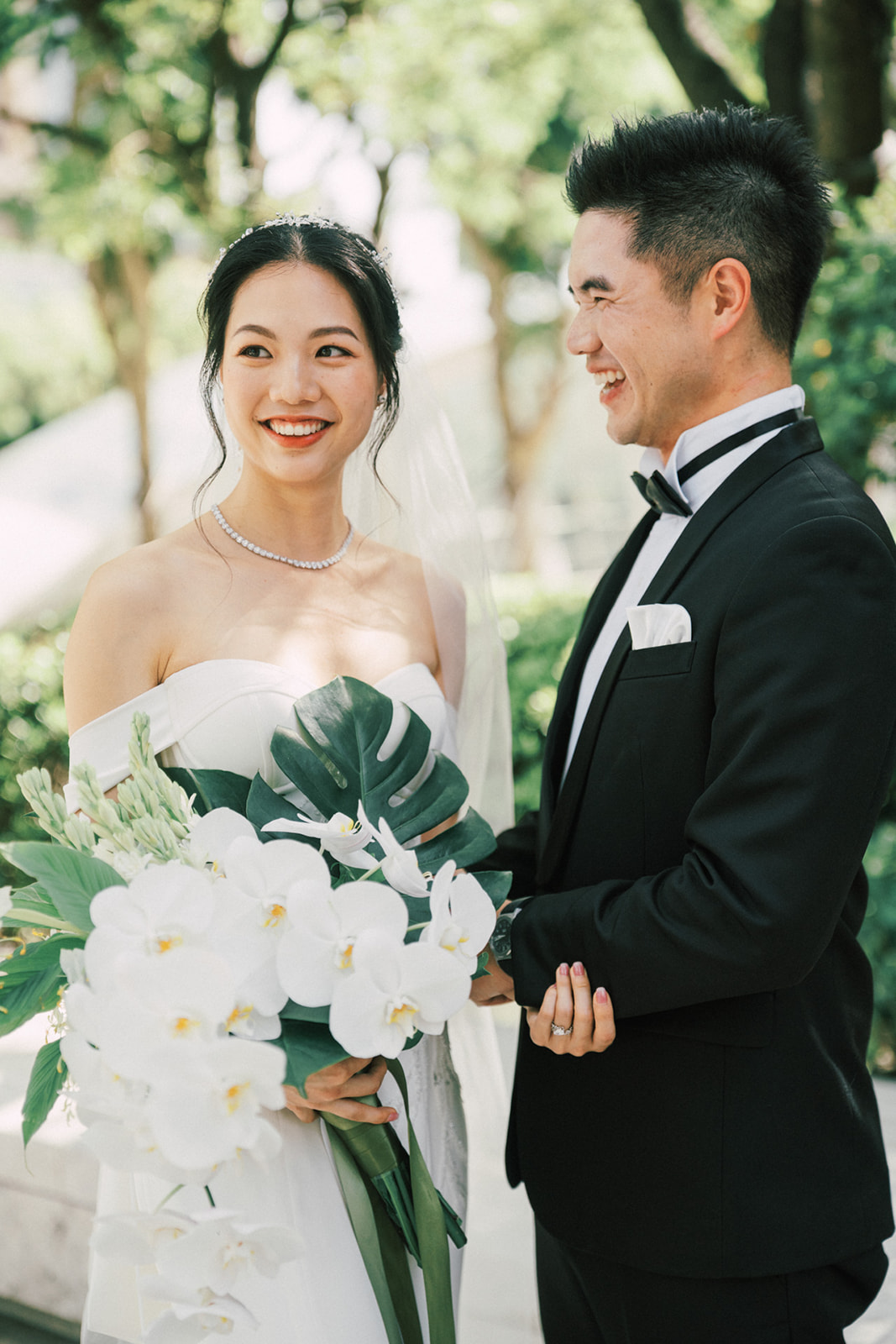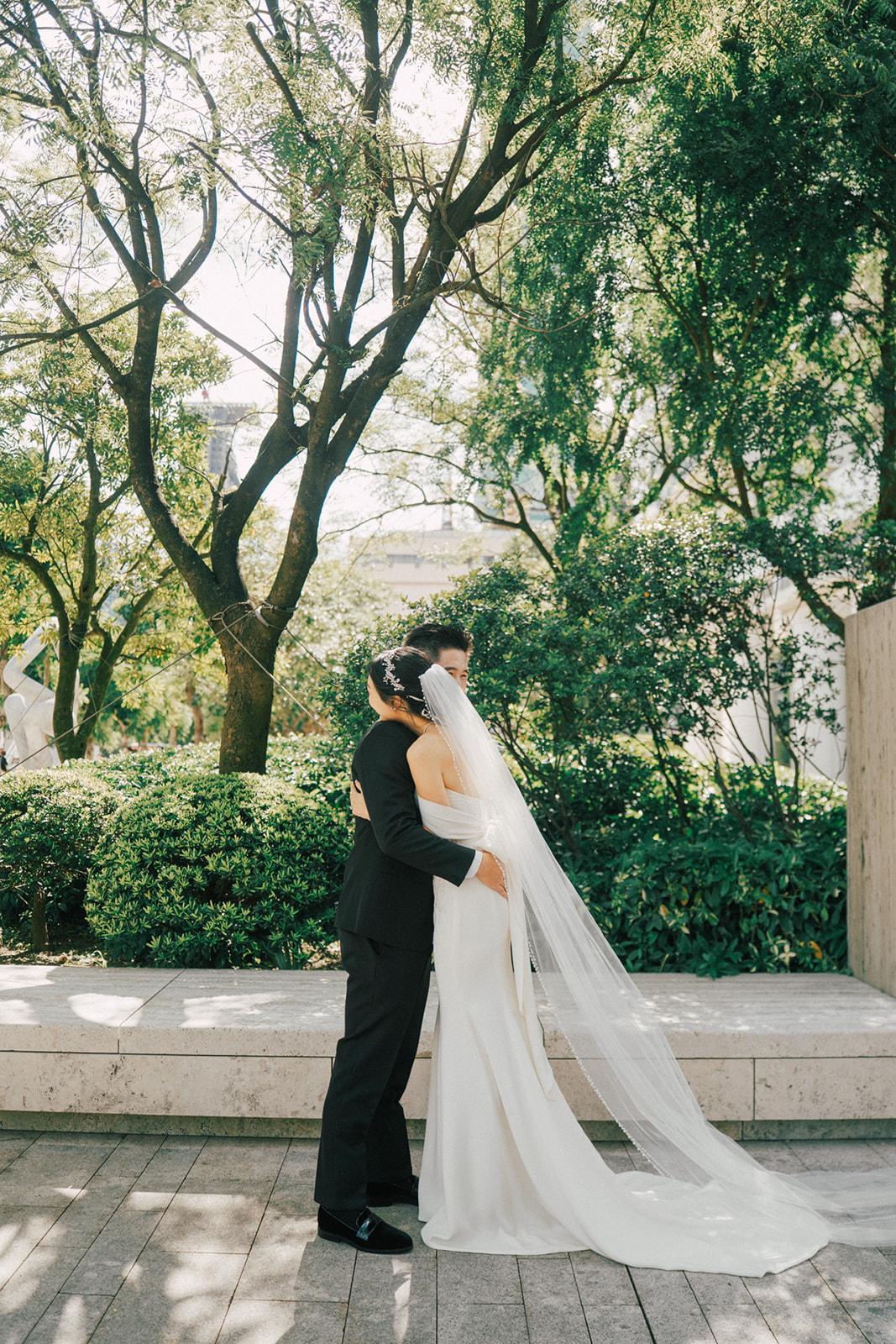 而我還記得一個有意思片段,新娘的爸爸說First Look你可以在一樓門口那拍。好傢伙,這一樓剛好就正挨著捷運站口啊~ 我問了新郎對於First Look的地點,你有什麼想法,他說:我喜歡綠色多一點, 對了,我怕熱,可能撐不了太久。