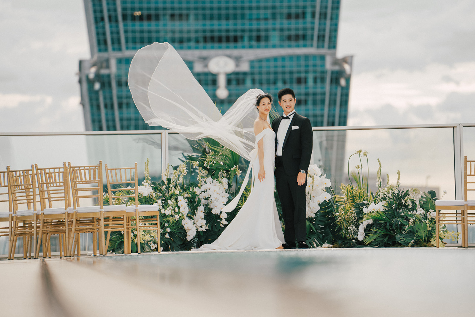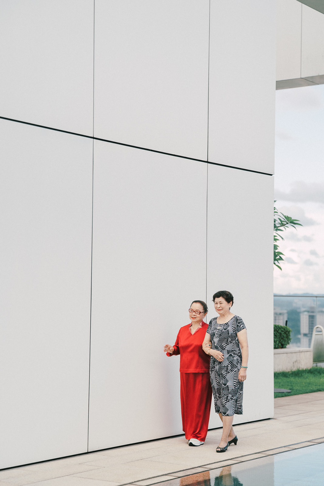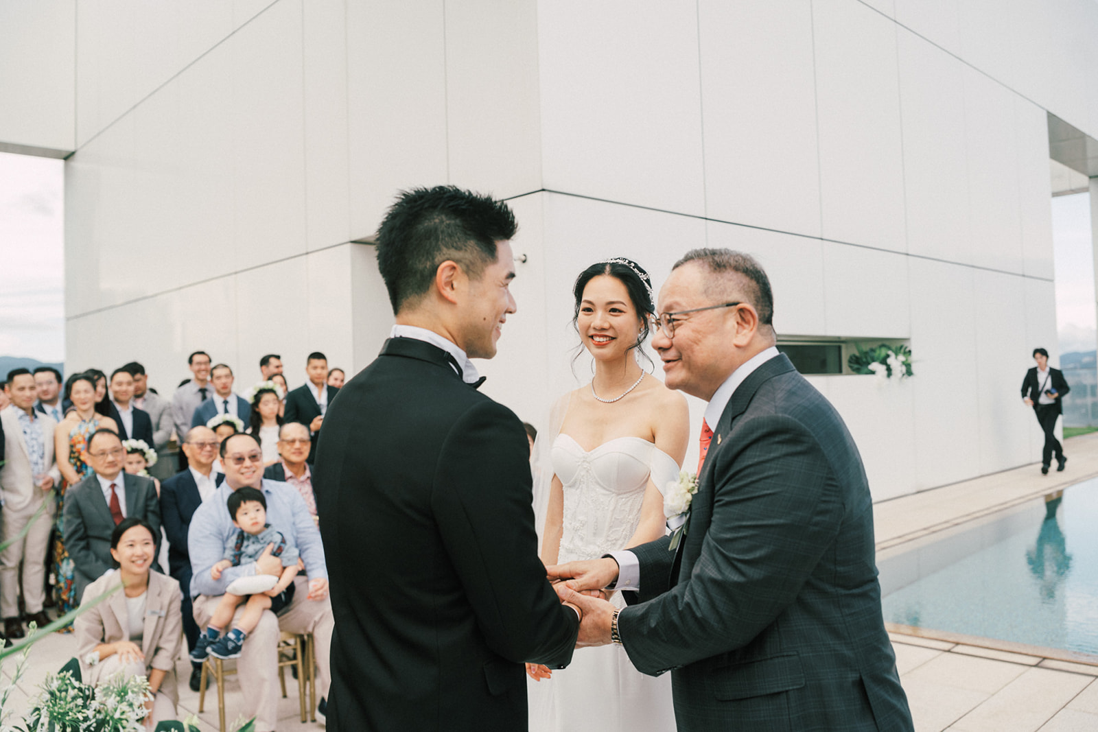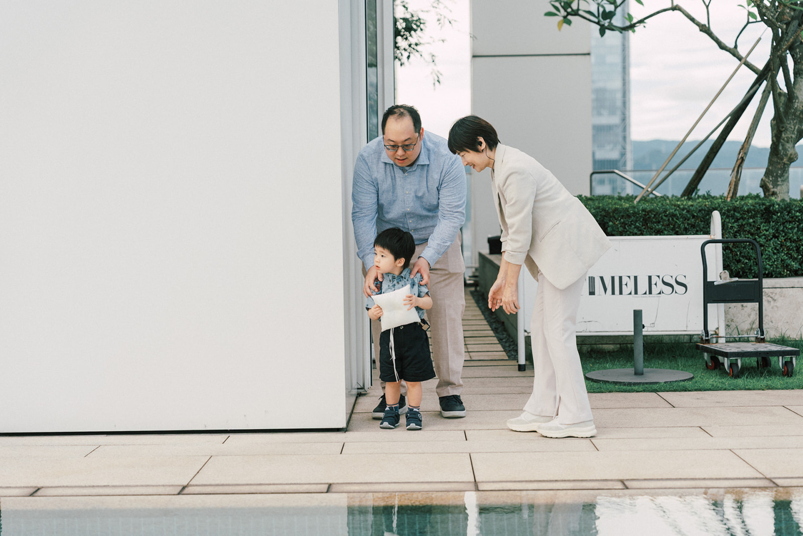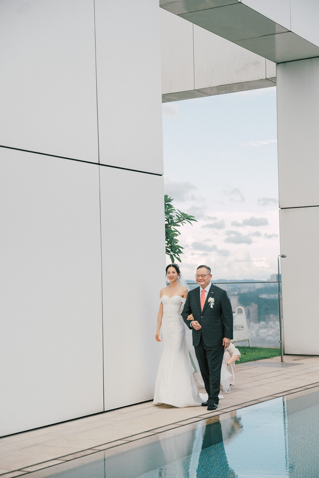 新人是我之前拍過新娘的妹妹,所以已經見過許多次了,而這次的拍攝,他們給了我一個很特別的企劃,他們要簡單,方便,但又能夠獨特的婚禮,於是他們選擇了在自家大樓的樓頂泳池舉辦婚禮。