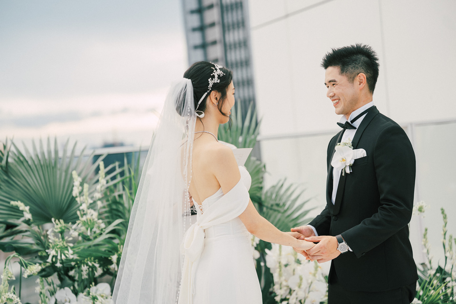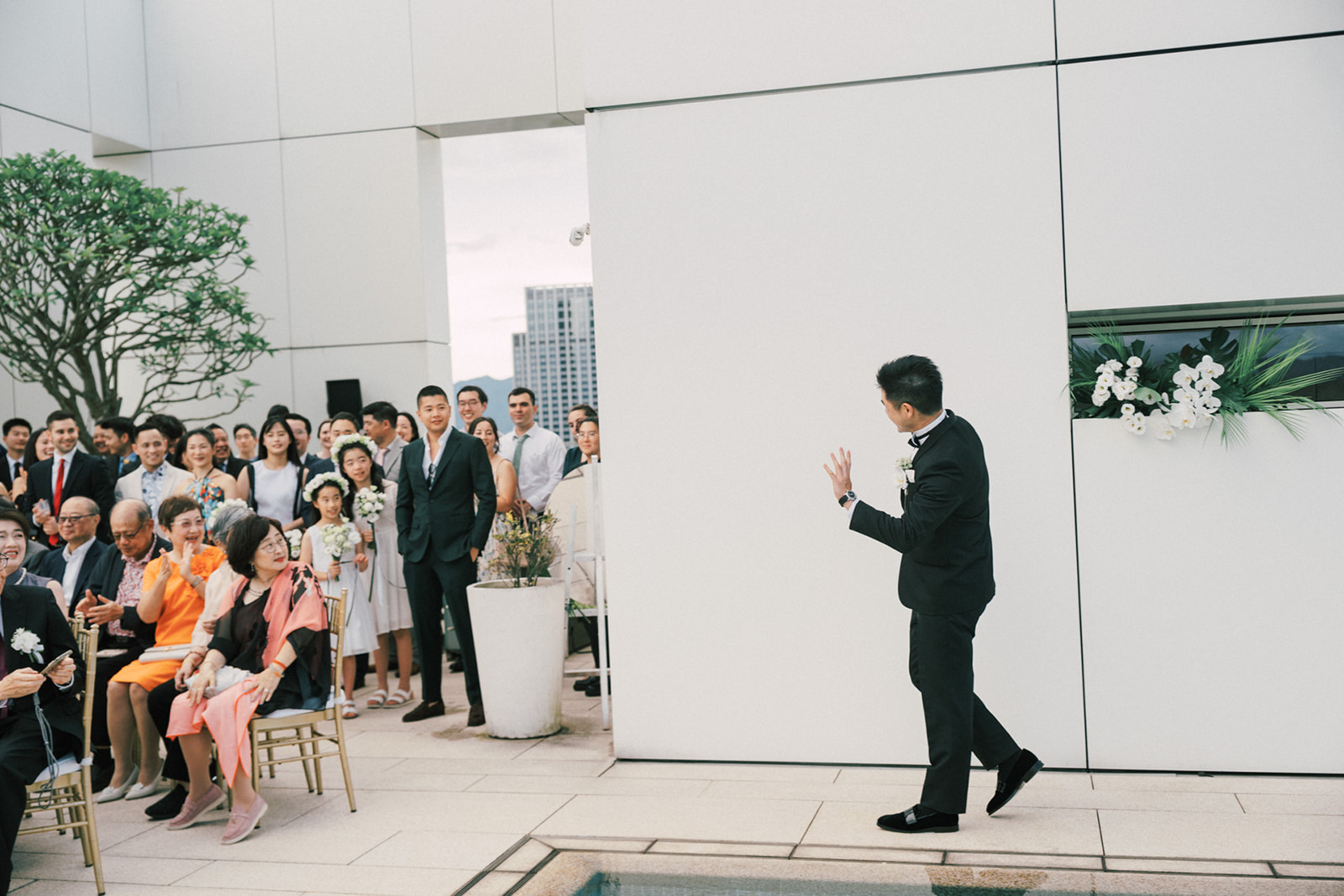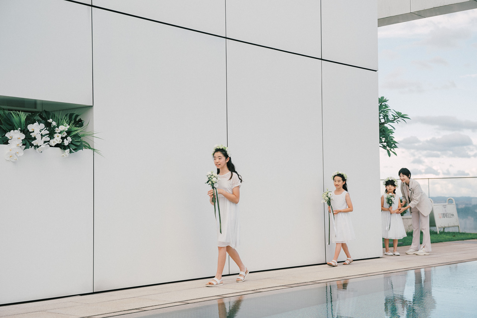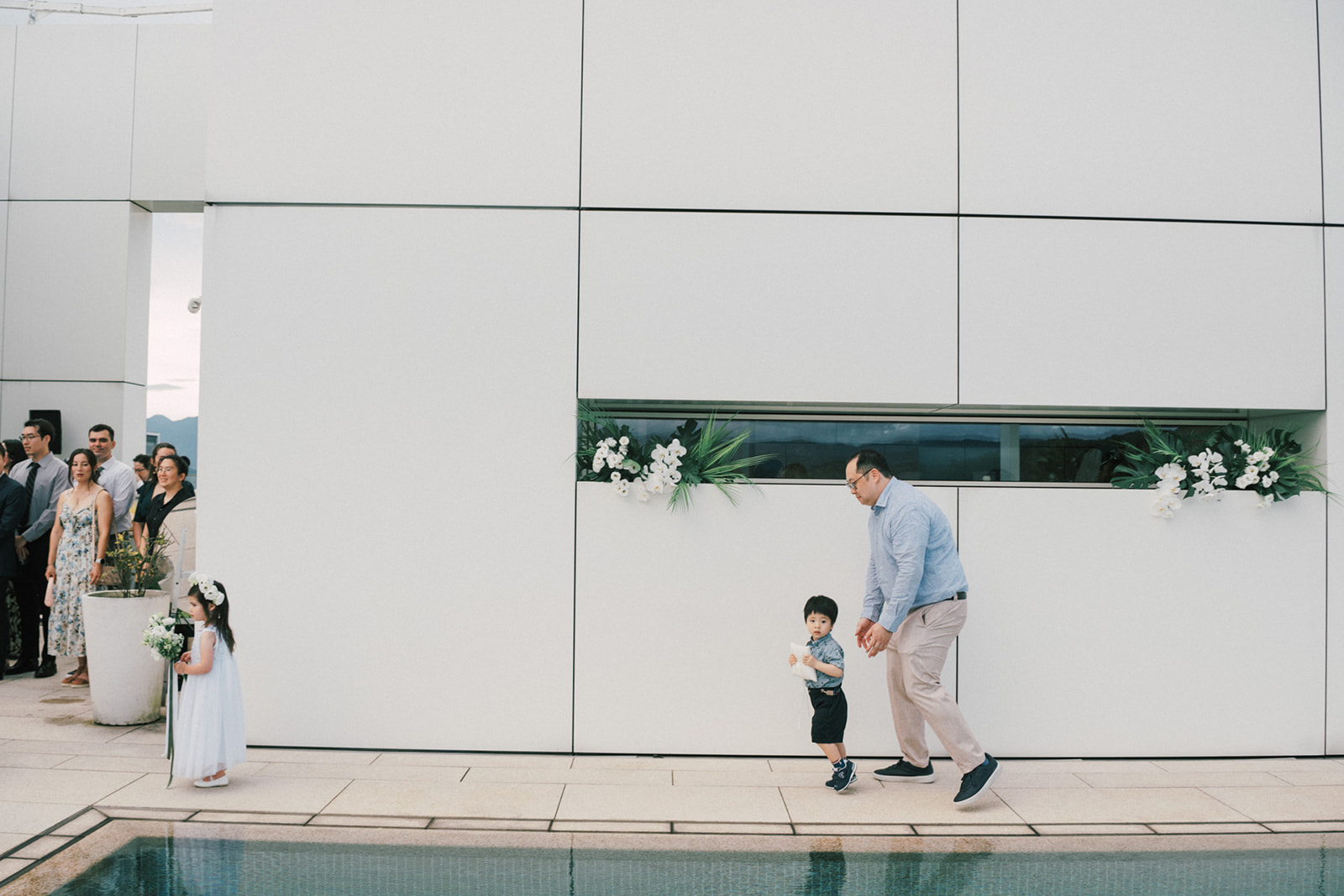 新人是我之前拍過新娘的妹妹,所以已經見過許多次了,而這次的拍攝,他們給了我一個很特別的企劃,他們要簡單,方便,但又能夠獨特的婚禮,於是他們選擇了在自家大樓的樓頂泳池舉辦婚禮。