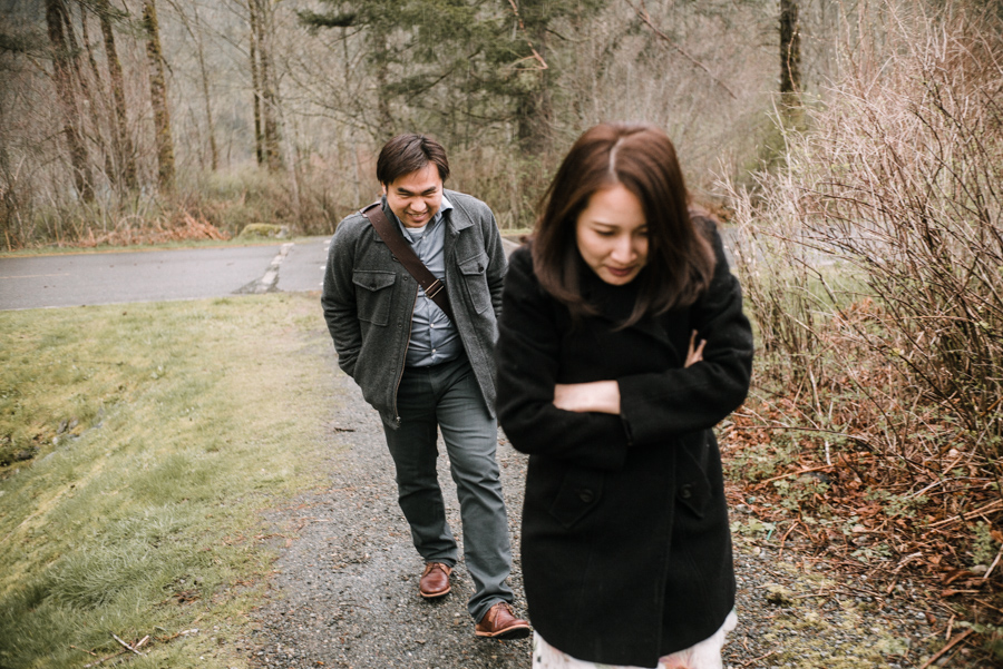 西雅圖的天氣陰雨著,氣溫接近五六度,我們瘋狂地衝去附近公園,想要試著進行些許的拍攝。但實在是太冷了,20分鐘之後,就草草了事衝回車子裡想著晚餐。我說,這樣也挺好的,不論拍攝是否完美,我們一起經歷的,即是美好。